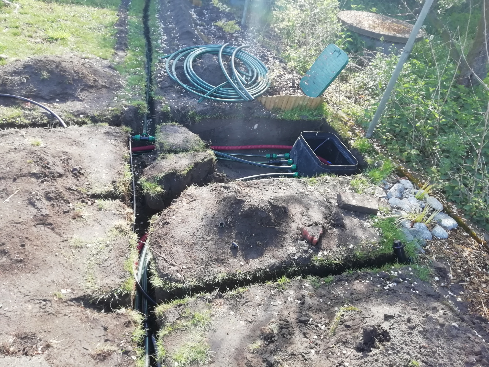 Na zahradě RD jsme provedli kompletní rozvod závlahového systému včetně usazení, zahrnutí a zprovoznění.